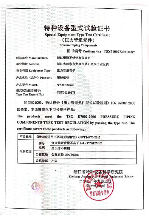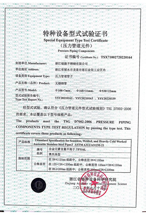 浙江銀隆不銹鋼有限公司創(chuàng)始于2006年,是一家專業(yè)生產(chǎn)不銹鋼無縫管的企業(yè)。公司位于浙江麗水市,企業(yè)注冊(cè)總資金貳億壹仟柒佰肆拾玖萬元,擁有4家工廠,占地總面積11萬平方米,職工530人,年產(chǎn)不銹鋼無縫管5萬噸。